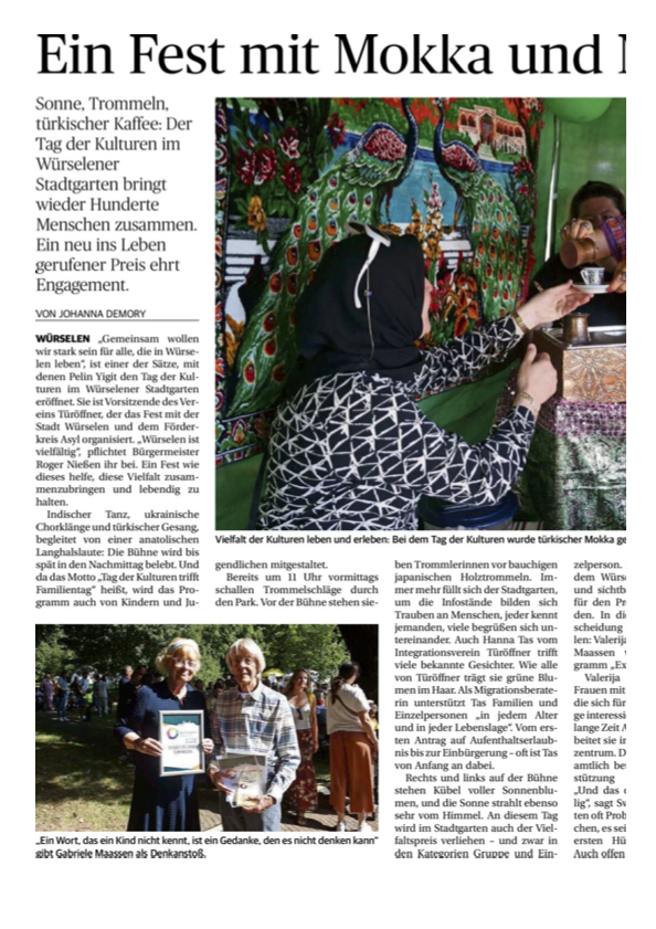 Presse- und Medienberichte Mitglied werden Spenden presseartikel Veranstaltungen Presseartikel 2025 2024 2023 2022 2021 2020 2019 Auszeichnung 2014 Türen öffnen – Gutes tun – Spender werden 10€ 20€ 50€ 250€ Sonstiges FolgenFolgenFolgenFolgen